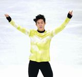 「フィギュアスケート・GPファイナル」(7日、トリノ) 世界最高得点をマークし、圧倒的な力で3連覇を達成したネーサン・チェン(20)=米国=がフリーで着用した衣装が、世界に困惑を呼んでいる。各選手がきらびやかで、凝った衣装に身を包む中、鮮やかすぎる黄色に白のまだらが入ったTシャツ風の衣装で登場。インターネット上では「練習着ではないのか」と動揺が走ったが、チェンは異次元の演技を見せた。