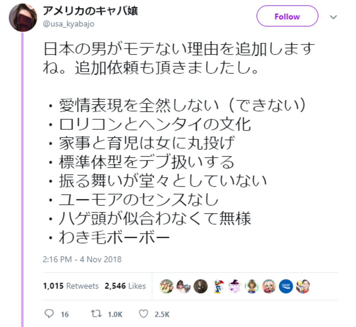 687 匿名さん 20/02/06(木) 20:03 上野千鶴子@ueno_wan #KuToo の署名広告が朝日新聞9月20日付けに掲載。 上野も、認定NPO法人ウィメンズアクションネットワークも参加しました。わたしは重度の外反母趾、 ハイヒールの靴は全部捨てました。こんな不自然な靴を美しいと感じて履いているなんて野蛮だと思う。 はすみ としこ @hasumi29430098 ハイヒールが似合わないブスが僻んでるだけでしょ。フェミニストって本当ブスばかりだね。 女磨きをサボったり、性格が歪んでいるから外見が醜い。だから男に相手にされなくなる。要は女の負け組だ。 それを逆恨みして男を異常に敵視する。女社会では勝てないからって男社会に入ってきて、男の真似をする 春名風花 official@harukazechan 好きでヒールを履いてる人のセンスまで野蛮呼ばわりする行為の方がよっぽど品がないし野蛮だわ