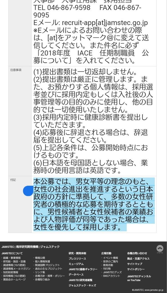 691 匿名さん 20/02/06(木) 20:11 厚生労働省-『 男女均等な採用ルール』 ○募集または採用に係る情報の提供について、女性に有利な取扱いをすること ○採用の基準を満たす者の中から男性より女性を優先して採用すること