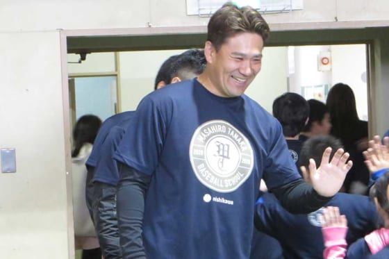 ヤンキースの田中将大投手が24日、宮城の仙台市立東宮城野小学校を訪問。震災で被災した荒浜小学校の児童を受け入れていた同校で、一緒に給食を食べるなど触れ合った。児童からの「野球とは?」という“直球質問に「人生そのもの」と応える場面もあった。