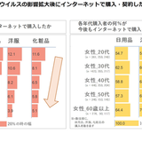 「新型コロナウイルスの影響拡大後に、インターネットで購入・契約したもの」を聞くと、「日用品」11.6%、「食べ物の出前や宅配、持ち帰り」8.3%、「食材〈米・野菜・肉など〉」6.3%が上位で、外出自粛や三密回避の影響が見える。あわせて「影響収束後もネットで契約・購入を続ける見込みのもの」を聞いているが、いずれの商品も、引き続きネット購入を続ける意向が強い。 「日用品」「洋服」「化粧品」の3項目について、女性のみの年代別に見ると、若い年代ほどネット購入を始めた人が多かったが、今後の購入継続の意向は、高年齢層ほど強かった。“使わず嫌い”だった高年齢層が、ネット購入の便利さや安全性に目覚めたと思われる。新型コロナきっかけで“ネット購入”に目覚めた女性高年齢層、強い継続利用の意向を示す【ヴァリューズ調べ】 | Web担当者Forum