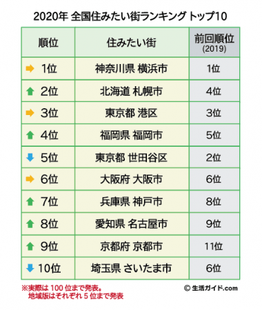 住みたい街ランキング、2位は「札幌市」 3位には東京から「港区」が入る