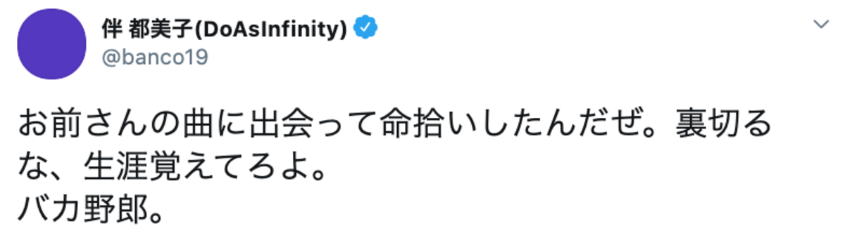 Do As Infinity 伴都美子「裏切るな、生涯覚えてろよ。バカ野郎」 元メンバー起訴に反応?