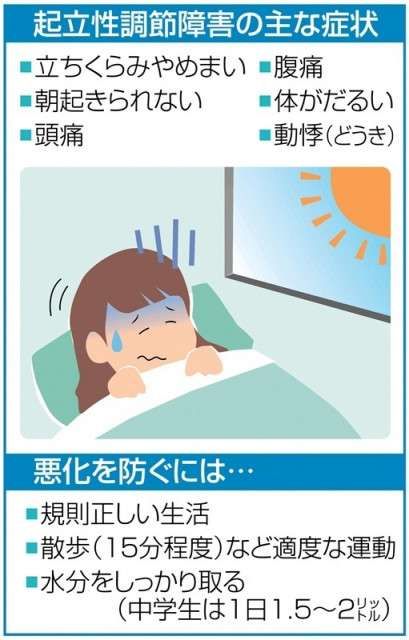 ODは自律神経の働きが崩れ、体を起こしたり立ったりする時に脳などの血流が低下して発症する。小学校高学年から高校生に多く、中学生の1割に見られる。そこにコロナ禍が加わり、症状を訴える子どもはさらに増えているという。 大阪医大病院小児科の吉田誠司医師によると、もともとの体質にストレス、運動習慣の変化、天候などが影響して起きる。「長期休校と外出自粛により日中の活動量が減ったり生活のリズムが乱れたりしたことに加え、ODの症状が悪化しやすい梅雨や夏の時季に休校明けが重なった」 治療によって症状は改善できる。生活習慣を正し、散歩など適度な運動を心掛ける▽水分を多めに取る▽投薬で血圧を上げる-などだ。ただ一番大切なのは周囲の理解という。「学校の先生や友人、家族が病気を知っていれば本人への声掛けなど対応は変わる。不安を取り除くことが大事だ」朝起きられず退学に…コロナ禍で拍車がかかる10代の「起立性調節障害」 - ライブドアニュース