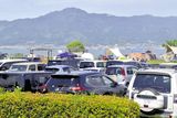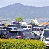 新型コロナウイルスの感染拡大で大阪など4都府県で緊急事態宣言の期間に入った25日、滋賀県内では琵琶湖岸や主要な観光地で県外からの来客が目立った。三日月知事は宣言地域からの不要不急の来県自粛を求めているが、効果は限定的の