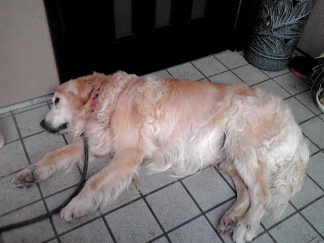 昼間も玄関先でグデ~~zzz (出入りに支障もお構い無し(笑))