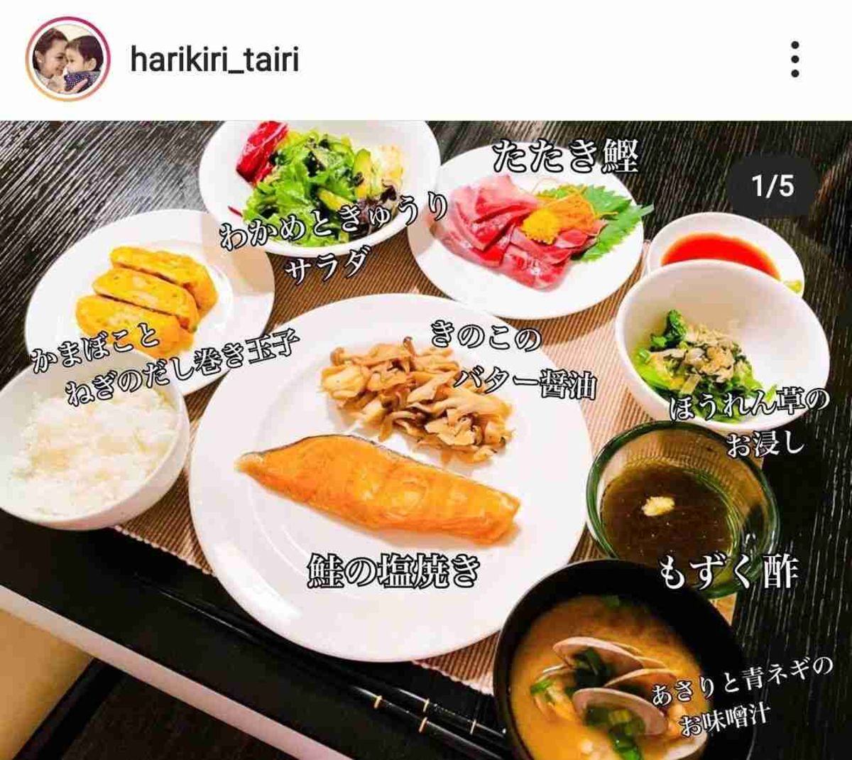 サッカー日本代表DF長友佑都(FC東京)の妻でタレントの平愛梨が27日に、自身のインスタグラムを更新。手作り料理の写真を公開した。