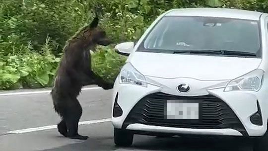 同財団によると、同日午前10時半ごろ、通りかかった車の同乗者が、対向車のボンネットにクマが登ろうとするのを目撃し、動画を撮影した。クマは体長約1・2メートル。十数秒間、ミラーに前足をかけたり揺さぶるようなしぐさをしたりして、まとわり付いた。 同財団によると、5月にも国立公園の斜里町側でクマがミラーをかじるなどの被害が3件発生。同財団は、クマと遭遇した場合は車体に近づかれる前に素早く通り抜け、まとわり付かれた場合は窓やドアを開けずに離れるよう呼びかけている。クマが乗用車に近づき車体揺する 羅臼の知床横断道:北海道新聞 どうしん電子版