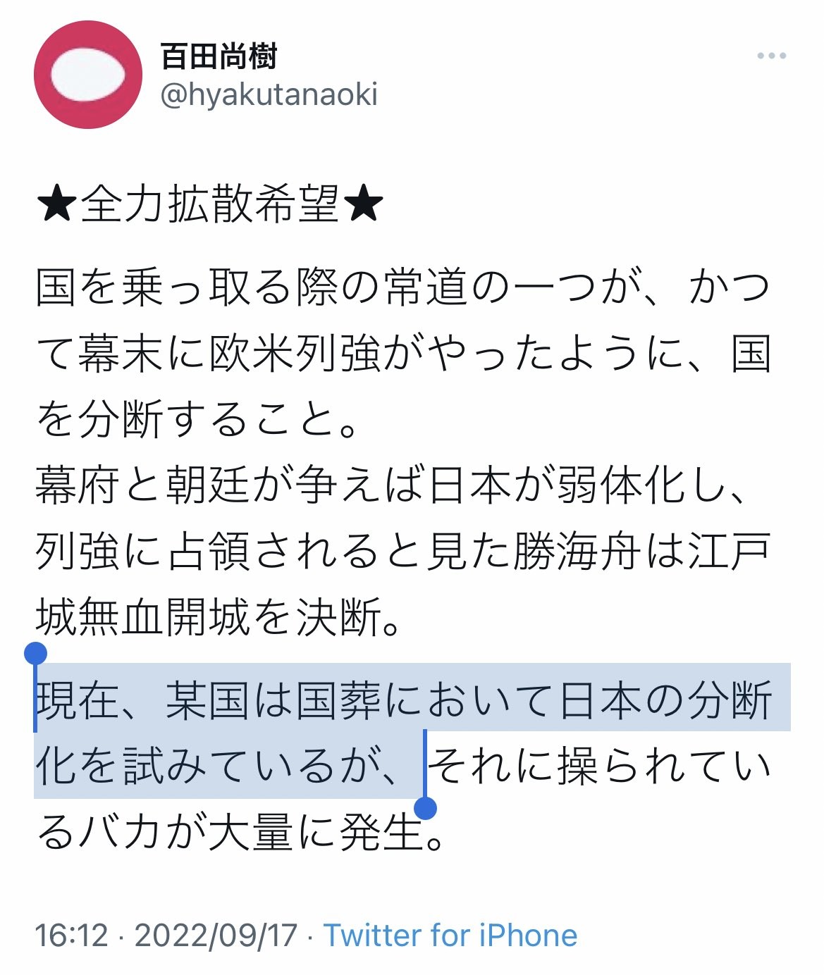 百田尚樹さんのところにも招待状は来なかったようだ