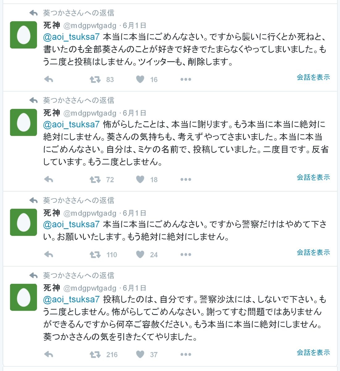 警視庁によりますと、才田容疑者は先月から今月にかけて、タレントの葵つかささん(25)のツイッターに「全国ツアーで何かあるかもしれないぞ。お前のことを襲いに行ってやる」などと書き込んで脅したとして、脅迫の疑いが持たれています。