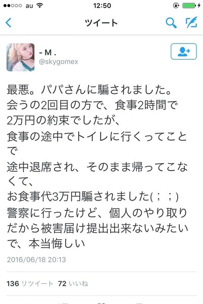 そんな女も買う男もキモイ。 事件に巻き込まれでもしたらいい。 自業自得だよ。