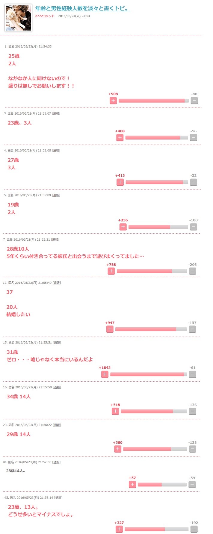 素人女はアジアの中だとダントツに経験人数多いからな日本女は まぁ普通25で4人くらいが妥当やろ 7人とか越えだすとほぼガイジやろ