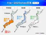 12月には冬型の気圧配置が現れやすくなり、一気に冬の訪れを感じられる日が増えるでしょう。 全国的に気温は平年並みとなる見込みで、11月が高温なだけに、落差が大きく感じられそうです。 北風が身に沁みる寒さとなり、北日本に限らず、東日本や西日本も昼間もコートが手放せない日が続くでしょう。来年1月も全国的に気温は平年並みとなる見込みで、真冬らしい寒さになりそうです。11月もまだ異例の暑さ 12月は季節急加速 冬型強まり、日本海側で雪多め 3か月(気象予報士 石榑 亜紀子)