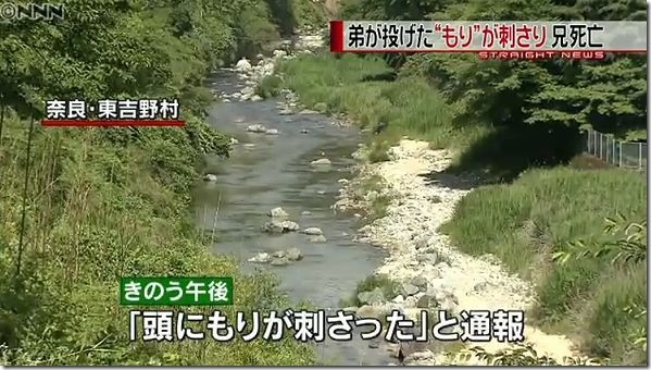 2日午後3時45分頃、奈良県東吉野村の高見川で、川遊びをしていた同県内の中学2年の男子生徒が、一緒に来ていた友人に渡そうと、もり(長さ約2メートル)を投げたところ、近くにいた中学3年の兄の頭に刺さった。