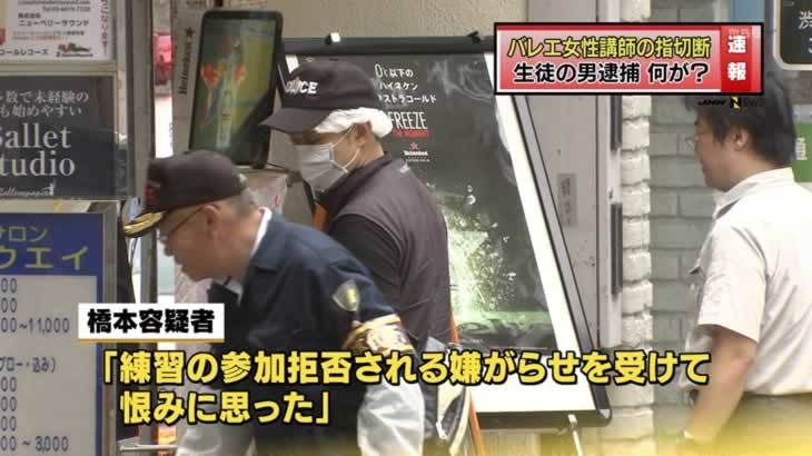 6日朝、東京・渋谷のバレエ教室で、生徒として通っていた男が、講師の24歳の女性の指を工具で切断したとして、駆けつけた警察官にその場で逮捕され…