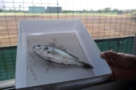 淡路佐野運動公園野球場(兵庫県淡路市)で19日にあった第98回全国高校野球選手権大会兵庫大会の3回戦・龍野北-川西北陵の試合中、空からグラウンドに魚が落下し、試合が3分間中断するハプニングがあった。 同日午後1時半ごろ、2点を追う龍野北の六回表の攻撃中に、川西北陵の諸石匠右翼手が突然、審判団へタイムを求めた。諸石右翼手の足元には銀色に光る物体があり、確認したところ魚と判明した。大きさは約20センチで、試合進行の妨げになるため、同校の控え選手がビニール袋を手に諸石右翼手のもとへ走って回収した。 兵庫県高校野球連盟の関係者らによると、魚は海に近い同球場の上空を飛んでいた鳥が落としたグチの仲間とみられる。大会本部席に届けられた珍客に、関係者らは「海が近いとはいえ珍しい」「臭いがすごかった」と苦笑していた。 県内では今年5月8日、西宮市の阪神甲子園球場で行われたプロ野球阪神-ヤクルト戦でも、上空から魚の死骸が落下、試合が中断した。高校野球の試合中、空から魚 白球…じゃなくて 淡路の球場(神戸新聞NEXT) - Yahoo!ニュース