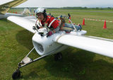 宮崎駿監督の作品「風の谷のナウシカ」に登場する飛行装置「メーヴェ」をモデルにしたジェットエンジン搭載の小型飛行機が31日、北海道滝川市のたきかわスカイパークで初めて公開テスト飛行した。