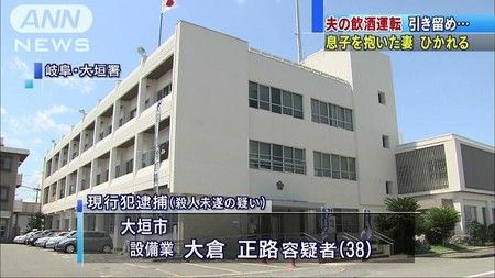 岐阜県で、夫の飲酒運転をやめさせるために2歳の息子を抱いた妻が夫の車の前に横たわ - Yahoo!ニュース(テレビ朝日系(ANN))