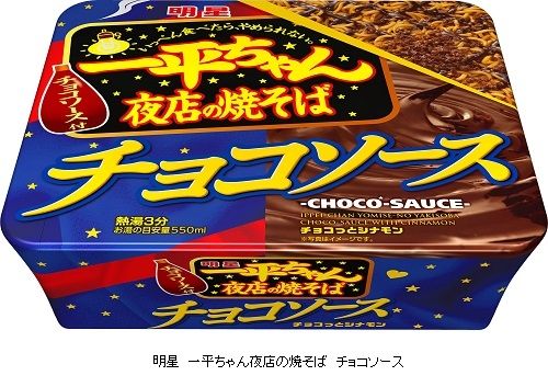 16年1月18日に「一平ちゃん夜店の焼そば チョコソース」が登場する。バレンタインに向けて発売する、チョコソースを付属した「夜店の焼そば」。甘じょっぱい味覚がクセになる、おやつ感覚の焼そばとなっている