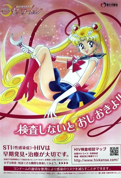 性感染症は性行為によって感染が広がる感染症で、梅毒やクラミジア、HIV(エイズ)などが含まれる。感染してもすぐに症状が出ないことも多く、発見が遅れたり、別の人に感染を広げたりする恐れもある。 性感染症の中でも、ここ数年、急増しているのが梅毒だ。平成23年には827人と、90年代から年1000人を下回ってきたが、今年は10月初旬までに3284人とすでに3000人を上回った。年齢別でみると20代前半では女性が男性を上回るなど、特に若い女性の増加が顕著だ。妊娠中の女性が梅毒に感染すると、死産や胎児に重い障害が出る恐れもある。 こうした状況に危機感を抱いた厚労省は、昨年から女性向けに梅毒の検査を呼びかける啓発ポスターを作成。若い女性に訴えるため、ピンクやハートといったモチーフを検討した結果、患者が増えている世代が子供の頃から親しんだセーラームーンに白羽の矢が立った。原作者の武内直子さんも厚労省の申し出を快諾。ポスターは、月に座ったセーラームーンが「検査しないとおしおきよ!!」と検査を呼びかけるものに決まった。「検査しないとおしおきよ!!」 セーラームーンが性感染症予防呼びかけ 厚労省が起用