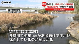 川崎市の多摩川で2日、職業不詳の18歳少年が全裸状態で川に浮き、溺死しているのが見つかった。目立った外傷はないという。少年は横浜市に住んでいるとみられ、母親が行方不明者届を出していた。警察は事件に巻き込まれた可能性もあるとみて調べている。