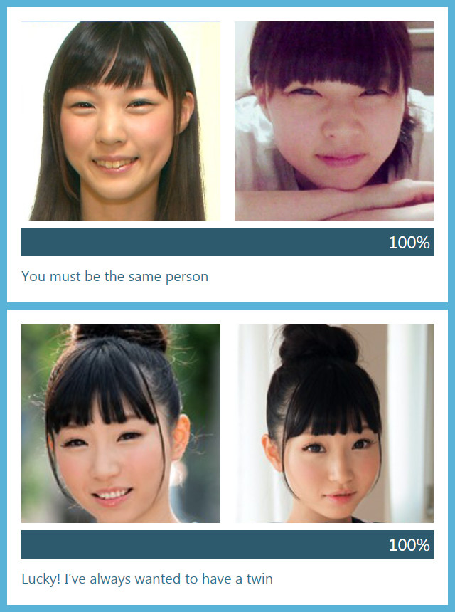 まずは比較に使った写真から もちろん同一人物なので100%と判定される