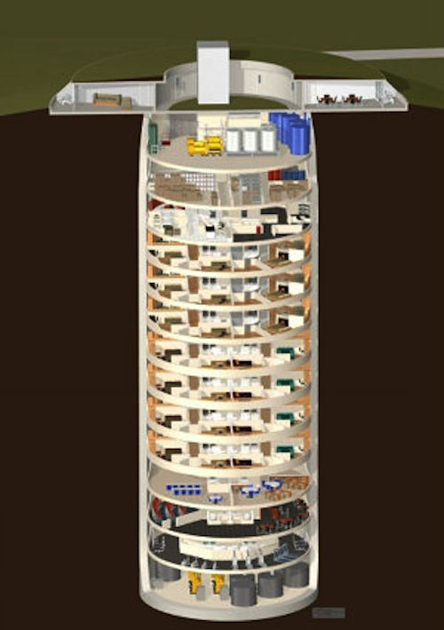 ■70人が5年以上生きられる 今回販売されたのは「サバイバル・コンド」の第1弾で、物件はカンザス州にある。 地下15階の分譲式マンションで、価格は1区画150万ドル(約1億7,000万円)〜300万ドル(約3億4,000万円)。 核戦争を始めとした世界終末を、「快適に」生き残れるように設計されているのが特徴だ。 70人の住人やスタッフが必要とする5年分の食料が蓄えられている5年分の食料、映画館付き…世界終末で「快適に生き残れる」高級核シェルターが米国で完売