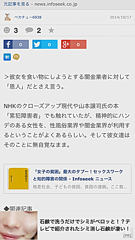 880 匿名さん 17/11/16(木) 17:51 風俗嬢って なんで往生際が悪いの? 風俗辞めたら明日から生活出来なくなっちゃうから風俗アンチに必死に歯向かうんでしょ? それにしても往生際が悪すぎだとおもわない? 頭の障害かなにかなの??
