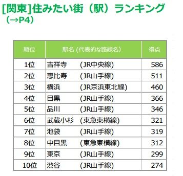 1位は2年ぶり6回目の吉祥寺。吉祥寺は調査開始以来5年連続トップを守っていたが、16年に恵比寿に抜かれ、2位に順位を下げていた。 2位以降は、恵比寿、横浜、目黒、品川、武蔵小杉、池袋、中目黒、東京、渋谷――と続く。新駅開業や車両基地の開発が話題になった品川は過去最高の5位に。再開発が進む渋谷は初のトップ10入りを果たした。 吉祥寺に対するコメントでは、「おしゃれでいながら庶民的でもあり、暮らしやすそうな街。魅力的な飲食店が多いイメージがある(女性44歳/DINKS)」「洗練されていて、東西へのアクセスが良い。JR中央線と京王線の2路線使える。居心地も良い(男性32歳/DINKS)」「緑もあり、新しい事と懐かしさの両方を感じられる良さがある。公園もたくさんある(男性38歳/ファミリー)」「衣食住の環境がよさそう。さまざまな点で住みやすそう(女性49歳/シングル)」などが寄せられている。恒例「住みたい街ランキング」吉祥寺が首位を奪還