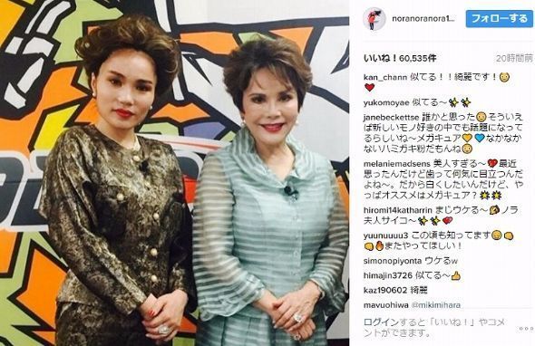 バブリー芸人の平野ノラさんが3月9日、デヴィ夫人に扮(ふん)した姿で本人と撮影した“そっくり2ショット”をInstagramに投稿しました。今まで2人が似てることに気づかなかったのは不覚。なんで今まで気づかなった! 平野ノラ、デヴィ夫人とそっくりだった「叔母とか言われたら信じるレベル」(ねとらぼ) - Yahoo!ニュース