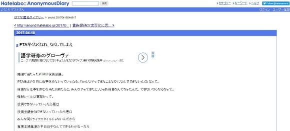 ■生々しい声 「はてな匿名ダイアリー」に投稿された『PTA早くなくなれ、なくしてしまえ』は、先述の通り、抽選でPTA役員に選ばれてしまった親と思われる人物による投稿だ。そこには多くの人が感じていたハズの疑問や憤りが、生々しく綴られている。以下でポイントを整理しよう。 ・PTA集まりの日に仕事を休めないと言ったら「みんなやってきたことなのになんでできないんだ」だと言われる ・みんな同じライフスタイルではない。専業主婦基準の平日日中なんて無理 ・職場に「今日、PTAの役員会議があるから休ませてください」っていったらクビにされそうな空気 ・仕事休んでまでやらないといけないPTAの集まりの仕事ってなに? ・ベルマークとかペットボトルのキャップ集め……などなど非効率極まりないものが多すぎる ・PTAはただの雑用係。学校にいいように使われてるだけ。しかも金まで払ってる ・「PTA加入は任意」とか言いながら怖さを感じるほどの強制 ・PTAの役員なんかやりたくないから、みんな押し付け合ってる ・PTA役員を引き受けるとストレスMAX。やらない人を批判する ・こんなに、みんながいやがる集まりになんの意味があるのか? ・昭和からやってきたことがそのまま受け継がれている。時代に合ってない【叫び】第2の「日本死ね」か? ブログ『PTA早くなくなれ、なくしてしまえ』が波紋