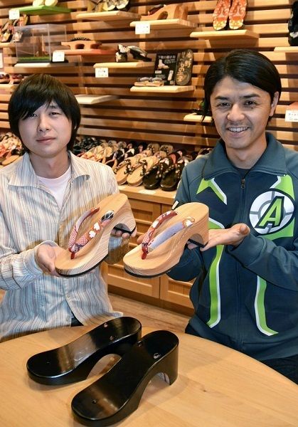 かかとの高さは9センチ。伝統工芸の「日田下駄」を製造販売する「本野はきもの工業」の3代目、本野雅幸さん(35)が「若い人にも気軽に履いてもらいたい」と考案。同県九重町の木工職人、後藤文生さん(32)と一緒に試作を重ね、2009年秋から販売している。 形がおしゃれで珍しく、昨年2月、映画の小道具を手掛ける会社から連絡を受けて実現した。劇中では、アクション用に鼻緒を替えて黒く着色し、俳優の戸田恵梨香さんと栗山千明さんが履いている。 「ようやく時代のニーズに合うようになったのかな」と後藤さん。“キムタク効果”とともにブーム到来を期待する。キムタクと共演、9センチヒール下駄 ブーム到来に期待 大分県日田市(西日本新聞) - Yahoo!ニュース