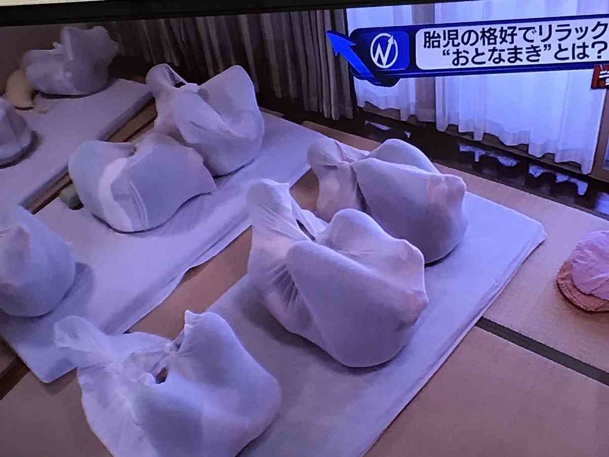 胎児の姿勢で布に巻かれながら寝る「おとなまき」というものが流行ってるとかwおひなまきからヒントを得たそうです。これでリラックス出来るようですが、ずっとやっていたら体が痛くなりそうですねw一度やってみたいところですw