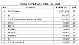 2015年年間観客動員ランキング発表 100万人超のMr.Children総合1位に(LiveFans調べ)(Billboard Japan) - Yahoo!ニュース