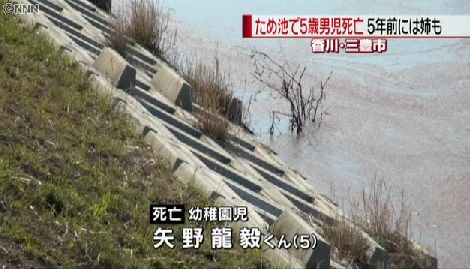 香川県三豊市のため池で平成27(2015)年3月、矢野龍毅ちゃん=当時(5)=が死亡したのは、22年4月にも同じ池で姉の麻弥ちゃん=同(3)=が死亡したのに安全…